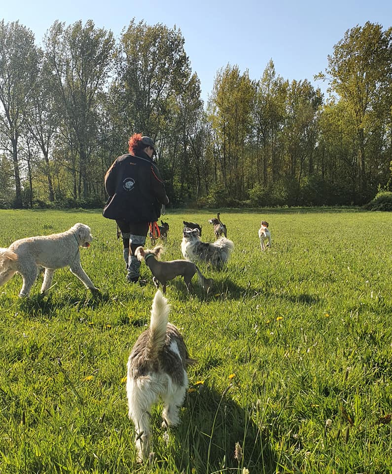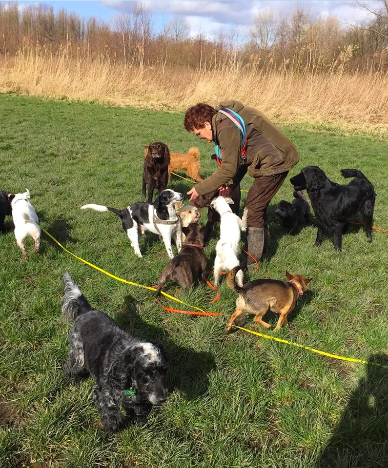 Walking with other dogs in a controlled group setting helps improve social skills and confidence.